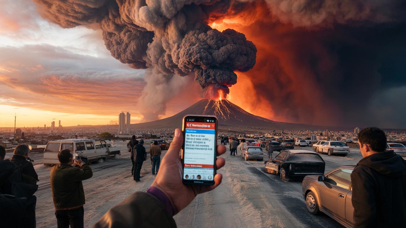 A screenshot, a headline, a red thumbnail on YouTube with a screaming volcano — and off it goes. Fear is contagious, and algorithms love it. During the Tonga eruption in 2022, searches for “end of the world volcano” exploded on Google within hours. People googled “safe countries” and “how far does ash travel” while the shockwave circled the planet.